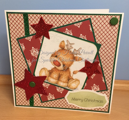 I've been having a play about in my craft room this week as I wanted to enter the current challenge at Use Your Stuff. The theme is to use some paint on your project. I chose to spray a heart shape, which I recycled from a card someone bought me a couple of years ago, using spray lacquer. I've also painted some chipboard letters with acrylic paint before coating them with pinflair glaze and addind a gem to each letter. I finished off with some flowers and a ribbon...